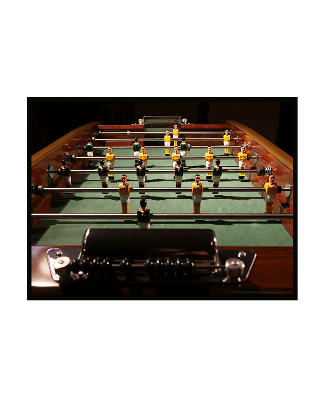 Tischfußball, wie man ihn aus Cafés kennt! Mit seiner zentralen Rückführung, seiner flachen Gerflex-Spielfläche mit schrägen Winkeln, seinen Teleskopstangen, seinen echten Lagern, seinen Gusseisenspielern und seinem massiven Buchengehäuse ist der Sulpie Evolution Tischfußball ein echter Tischfußball, der dem französischen Spiel entspricht, wie man ihn in vielen Cafés der 60er bis 80er Jahre fand. Mit diesem wertvollen Know-how und der Auswahl hochwertiger Materialien ist der Sulpie Tischfußball für Tischfußballspieler und dank seiner vielfältigen Anpassungsmöglichkeiten für viele Dekorationen von großem Interesse.