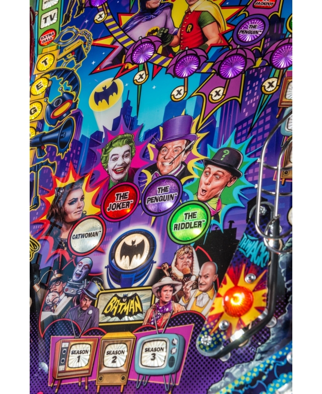Stern Pinball feiert sein 30-jähriges Jubiläum und die legendäre amerikanische Fernsehserie feiert ihr 50-jähriges Jubiläum mit einem Flipperautomaten der Jubiläumsedition mit den legendären, mit Umhängen bekleideten Rächern Batman und Robin. Das Spiel lässt die Spieler in die rasante Action dieses dynamischen Duos eintauchen, das in Gotham City das Verbrechen bekämpft! Während des Spiels sammeln Batman und Robin Hinweise und decken die Pläne von Superschurken auf, um das Böse zu vereiteln und die Bösewichte zu fassen! Die Spieler werden von den Stimmen der Original-Batman und Robin (1966), Adam West und Burt Ward, durch das Spiel geführt!